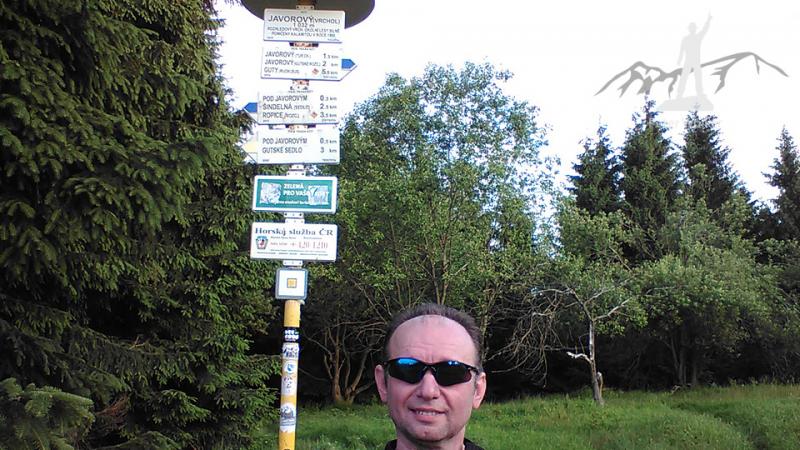 Takže si bliknu selfíčko na nádraží a plný energie vyrážím po zelené značce na Javorový. Začátek cesty je pohodlná rovinka, po 5 kilometrech ale začíná stoupání. Skoro 3 kilometry na Malý Javorový to je už docela pruťas. Selfíčko a valím na vrchol Javorový (1 031 m.n.m.). Tam jsem s 5 minutovým náskokem oproti itineráři. Dobrý pocit. Svačinka, náplast na patu, selfíčko a rubu 4 a půl kilometru po hřebenu na Ropici (1 083 m.n.m.). U indiána, nebo kdo to je, jsem stále s náskokem v 6:50, takže s nadšením sejdu 5 a půl kilometru na Morávku, kde potkávám prvního člověka. Takový vlasatý týpek sedí na malém traktůrku a na něco čeká. Chtěl jsem se ho zeptat na otevřenou hospodu, ale pak jsem si uvědomil, že v 7:50 je to blbá otázka. Takže se není proč zdržovat a proto valím na Travný.