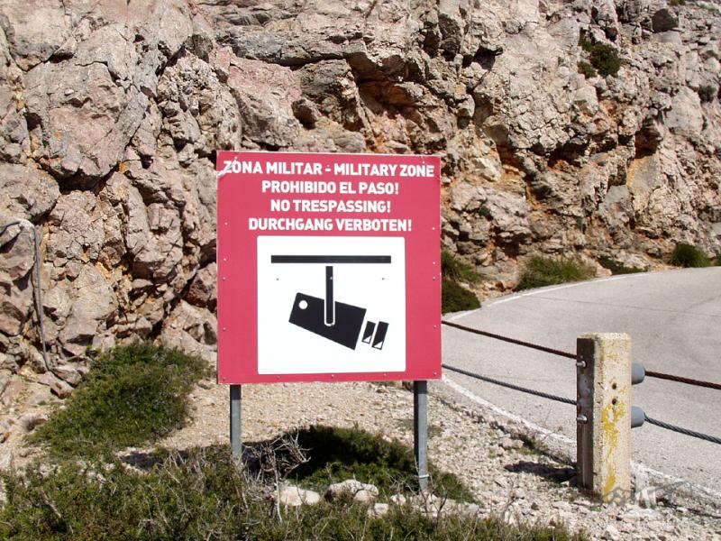 Když jsem byl na Mallorce v roce 2015, tak jsem tak trochu pokukoval po nejvyšší hoře Puig Major s 1 436 metry. Ale v té době to pro mě, vylézt na nejvyšší kopec ostrova, ještě tolik neznamenalo. Letos to už bylo pevně součástí plánu. A v plánu bylo: půjčím si auto, dojedu sepentýnami zhruba 6 kilometrů od vrcholu a pak se v poklidu projdu po cestě nahoru. Sice jsem věděl, že ten kopec okupují kluci, co si hrají na vojáky, ale myslel jsem si, že tam nechali nějaký ten prostor pro turisty. Nenechali. Ani škvírku. Všude třímetrové ploty, kamery a velké cedule. "Přelezeš plot, zemřeš. Podkopeš plot, zemřeš. Uděláš cokoliv jiného, zemřeš."