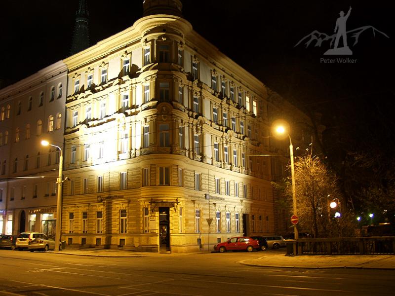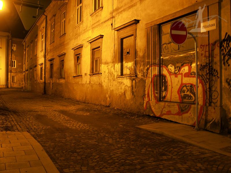 Je neděle okolo šesté večer, už to žije jen na Horním náměstí, kde jsou vánoční trhy. Zbytek populace už sedí ve vyhřátých hospůdkách. Procházím uličkami a nerušeně můžu fotit. V Akademické ulici potkávám dva zachumlané chlapíky se stativy.