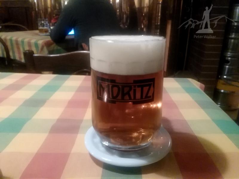 Začínám světlou jedenáctkou Moritz, je sladší a trochu vodnatější. Pak jsem si nechal usměvavou servírkou donést polotmavou jedenáctku Maisel. Ta už byla dobrá. A ve finále jsem se vlomil do dvanáctky Moritz - zlatý hřeb večera. Výborná.