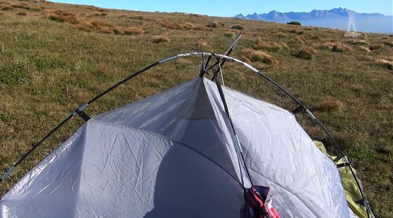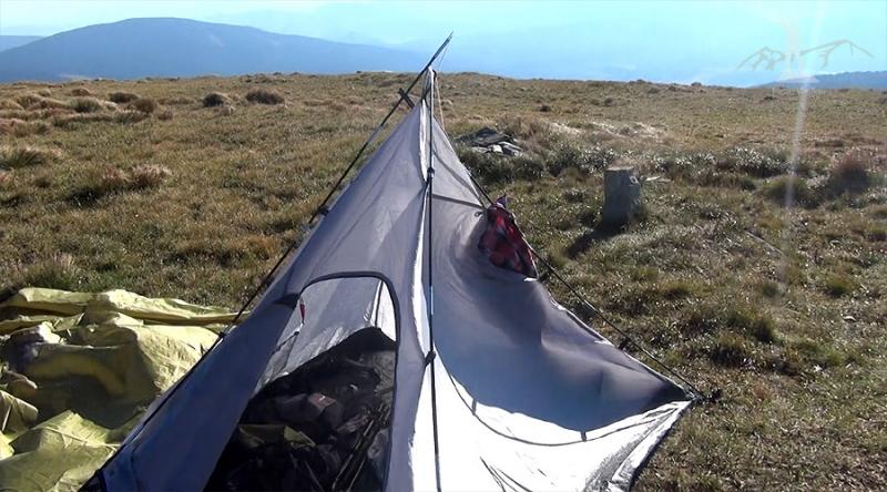 "Jestli ten vysílač minu, tak po mě najdou maximálně tak hodinky ve velkém medvědím hovně. Přece neudělám ze svého hejna dětí polosirotky." Našel jsem na svahu kousek "rovinky" abych postavil stan a přespal. Jelikož bylo docela teplo a bezvětří, natáhnul jsem jen vnitřní plášť stanu. Občas ale umím být najivní! Ve dvě v noci mě vzbudil vichr a kapající voda na obličej. S neskrývaným nadšením jsem vylezl a s hlasitým vyjmenováváním těch nejpeprnějších slov jsem se snažil natáhnou na stan druhý plášť. Po uchycení první spony jsem se pokoušel zacvaknout druhou sponu, když mi vichr vytrhnul tu první. V tu chvíli jsem použil slova, z nichž některé jsem doposud ani neznal. Kdybych tu plachu nedržel pevně, tak už ji nenajdu. Po mnohaminutovém boji s živlem vyhrávám a jdu se zachumlat zpátky do spacáku.