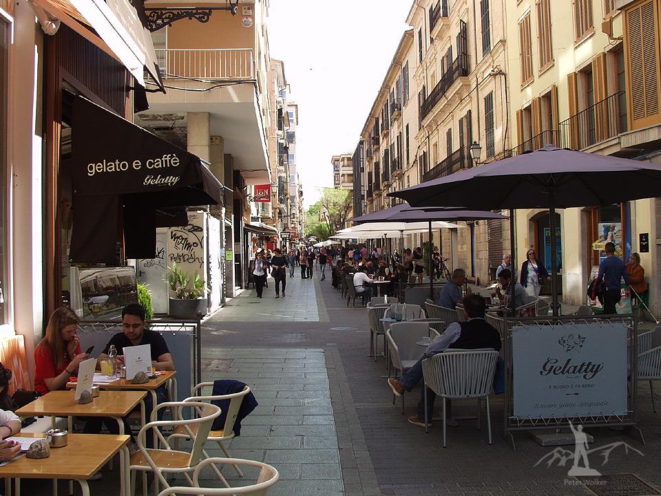 Centrum Palmy žije. Zahrádky jedou naplno, hraje hudba a točí se výborné pivo. Velké zahrádky u hotelů vynechte. Tam vás naškrobení panáci nechají čekat a pak vám donesou obyčejnou dvanáctku San Miguel a k tomu nic za pět euro. Střední a menší bistra naopak nabídnou výběr z několika piv a navíc ke každému dostanete pražené ořechy s kukuřicí, olivy nebo osmahnutou bagetu s olivovým olejem. Za tři a půl eura.