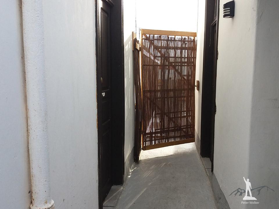 Zatím jsem měl pokoje, které se zamykaly. Klíčem, kartou, kódem. Tady to dotáhli do jiného levelu, zámky tu nemají vůbec. Ale ti šťastnější mají na dveřích aspoň kliku. Tak trochu hippies styl. Sice jsem dostal dveře bez zámku a bez kliky, ale zato mám cimru s názvem Kunlun přímo u terasy. Terasy s barem, abych byl přesný.