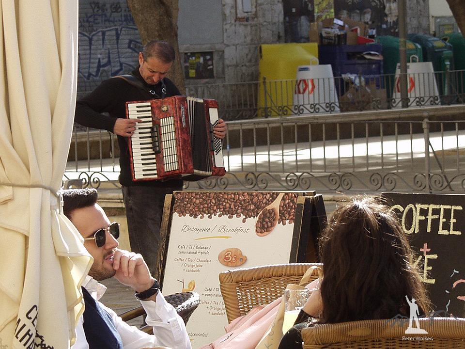 Na každém rohu někdo hraje. A někteří muzikanti jsou fakt dobří. Takovým nemám problém hodit nějaký drobák. Jenže u zahrádek je to jinak. Sedíte u pivka a přijde první bobík s harmonikou. Zabéká a jde kasírovat obecenstvo. Za 15 minut přijdou dva borci s kytarou. Zabékají a jdou vybrat nějaké to dinero. Za dalších 15 minut přijde další cantante a zase - zaplaťte. To vás pak přestane bavit.