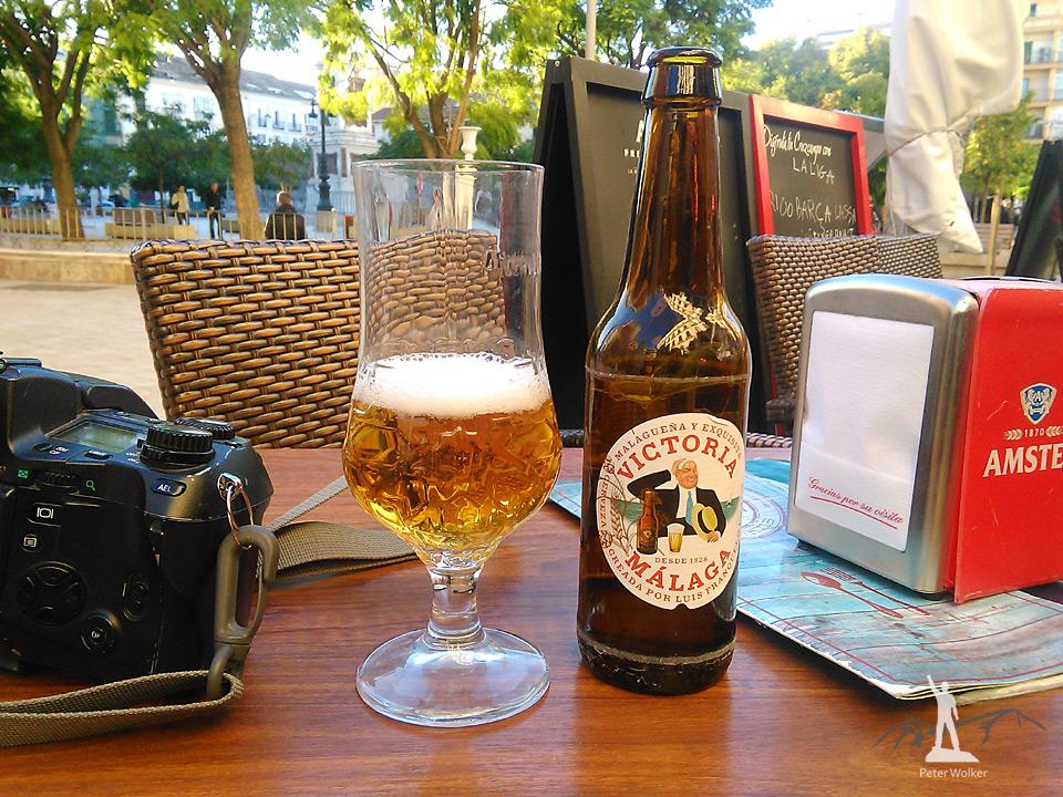 Procházím kolem zahrádek, které od jedenácté dopoledne jedou naplno. Čekám, která mě zaujme. Podniky, kde obsluhují chlapi, mě moc nelákají. Když v tom zahlídnu šikovnou blondýnku. Pro tuto chvíli moji útratu vyhrává tato zahrádka. Sedám si a blondýnka s úsměvem, že co si dám. Říkám, že pivo. Začíná mi nabízet takové ty eurovody typu Heineken, takže ji decentně stopnu a říkám, že chci dobré španělské pivo. A v tom mě borka šokuje svým pivním přehledem. Od místního piva Victoria, vařeného přímo tady v Malaze, přes dalších sedm španělských piv až po její oblíbené Alhambra Rojo s příchutí červeného vína. Spokojeně začínám tím místním...